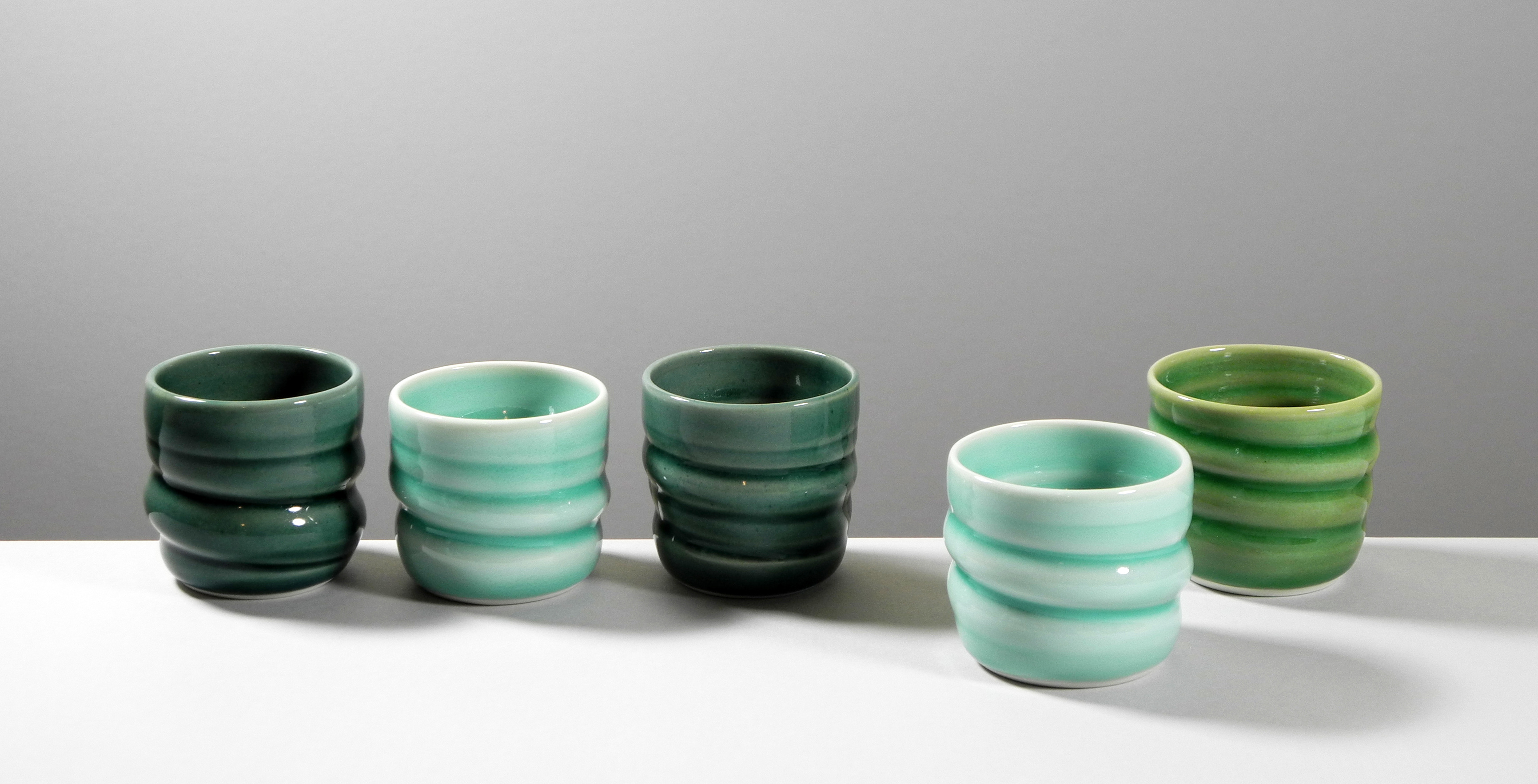 ‘Swirls’, hand thrown porcelain tot cups/espresso cups.