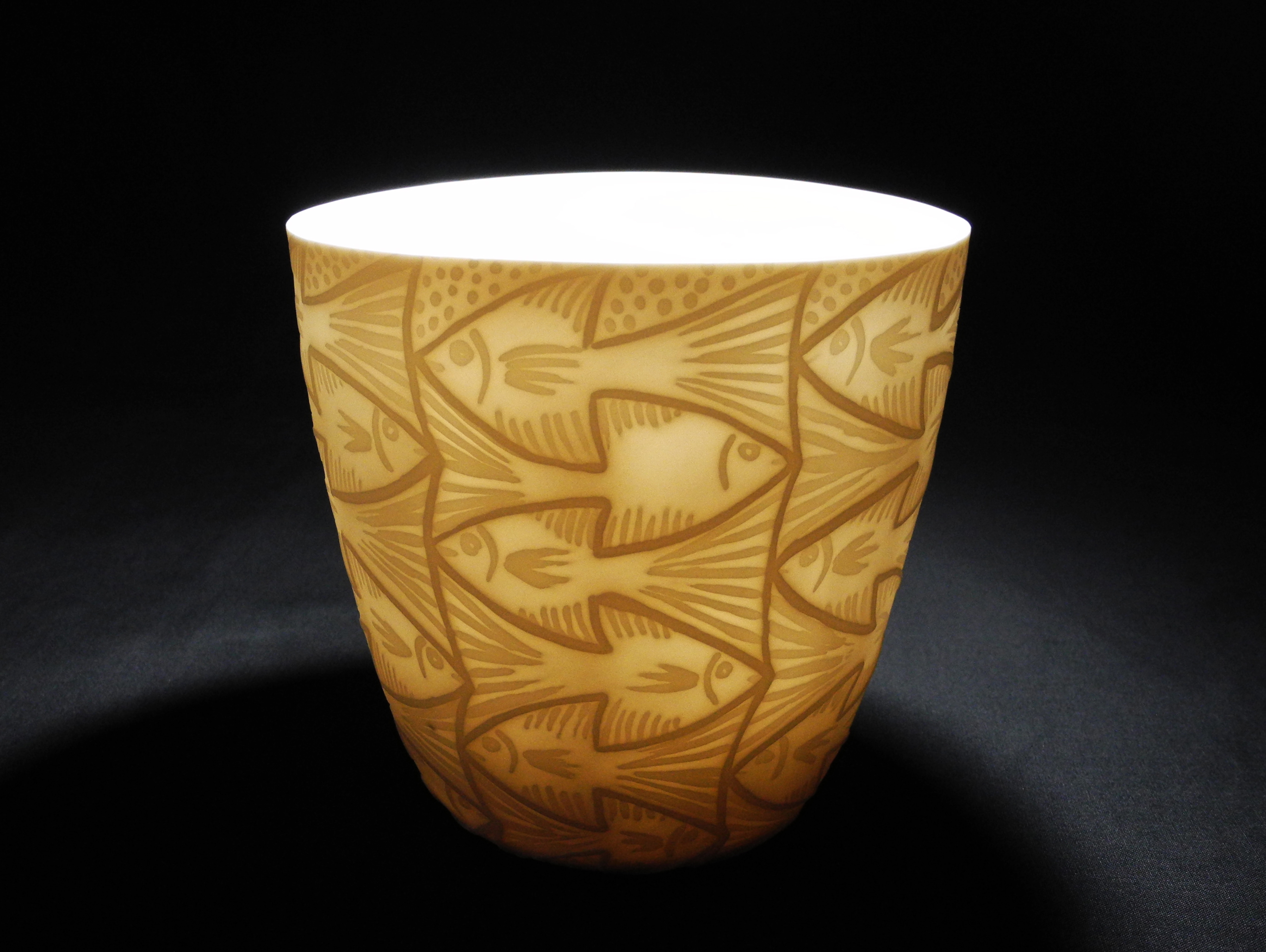 ‘Fish Bowl’, thrown and water-etched porcelain.