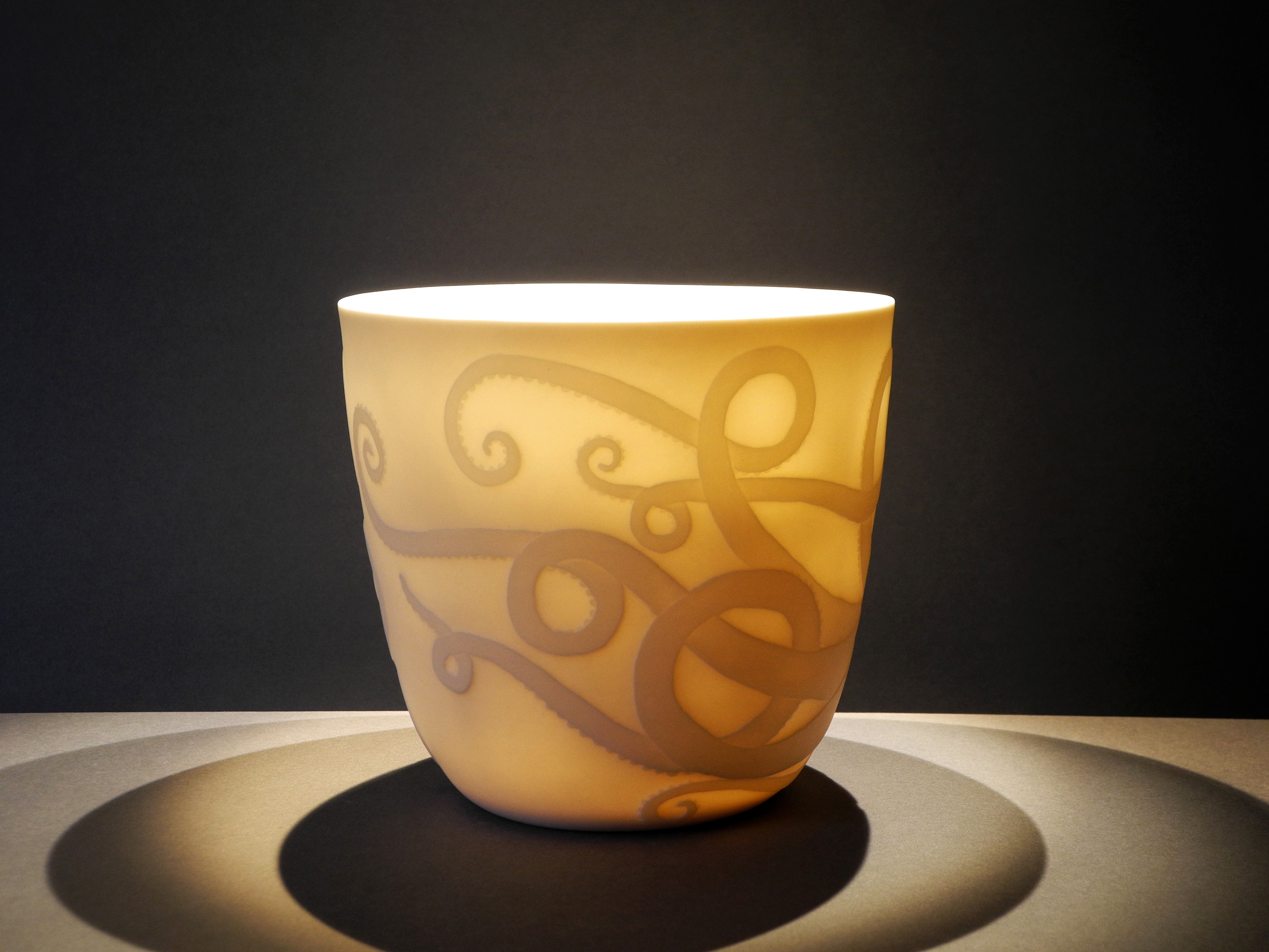 ‘Octopus’ thrown and water-etched porcelain.